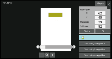 Adja meg a törlési tartományt, majd koppintson a [OK] gombra.A műveleti panelen válassza ki a [Törlési poz. alkalm. az összes oldalra.] vagy a [Törlési poz. alkalm. erre az oldalra.] lehetőséget.