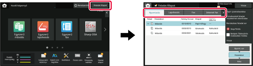 koppint, megjelenik a feladatállapot képernyő. Az előző módba visszatéréshez