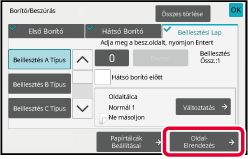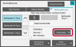 A feladatból az oldalelrendezés ellenőrzése után az [OK] gomb megérintésével léphet ki.A borító vagy beillesztési lap beállításainak módosítása.