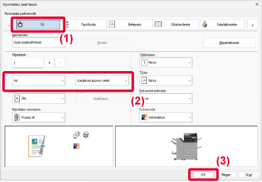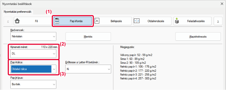 be a nyomtatáshoz használt papír méretét és típusát és a papírtálcát.
