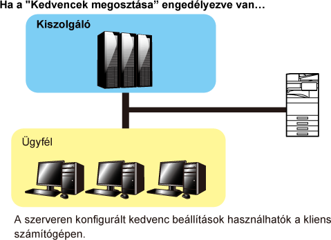 és a "Kedvenc" funkció be van állítva a megosztott szerver nyomtató-illesztőprogramjában,