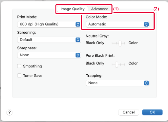 Minden oldal színesben nyomtatódik. A színes és fekete-fehér adatok egyaránt Y (Sárga), M (Magenta), C (Cián) és Bk (Fekete) festékkel nyomtatódnak. |