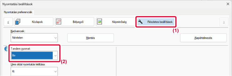 A tandem nyomtatás funkció használatához a nyomtató-illesztőprogramban