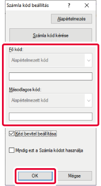 A nyomtatás elkezdésekor megjelenik a számlakód beállítási