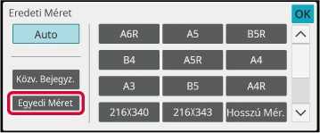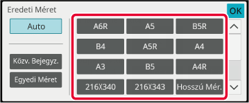 Az eredeti méret gombjának kiválasztása után érintse meg aA küldési méret papírméretként való megadásához