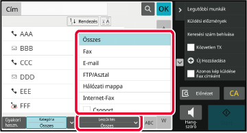 az internet fax alapképernyőjén a címtár megjelenítéséhez koppintson