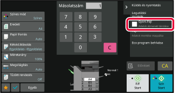A funkció végrehajtását követően az eredeti képadatait a gép eltárolja a Gyors fájl mappában.Ha bármely üzemmódban eredeti nyomtatásakor