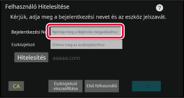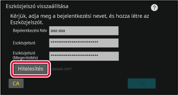 Koppintson a [Hitelesítés] gombra, és állítsa be a hitelesítési