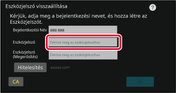 Az eszköz jelszava a gépen történő hitelesítéshez használt jelszó.