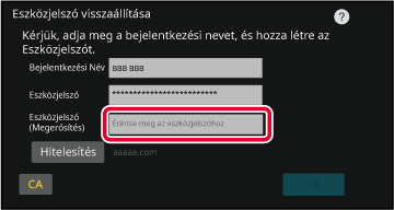 Írja be a 3. lépésben beállított készülékjelszót a "Készülék jelszavának