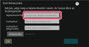 Beírás a szoftveres billentyűzettelHa a felhasználónév regisztrációja a beállítás módban