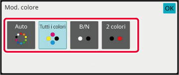 Al termine della procedura di impostazione, toccare il tasto [OK]. Verificare che sia selezionata la modalità di colore specificata.L'originale viene copiato