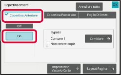 Toccare il tasto [Copertina Anteriore], quindi toccare il tasto [On].