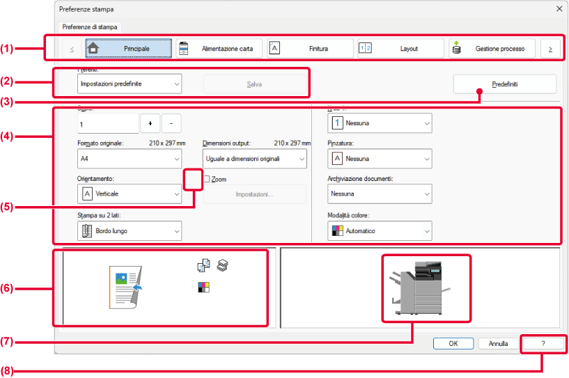 la stampa tandem e altre impostazioni di stampa dettagliate.