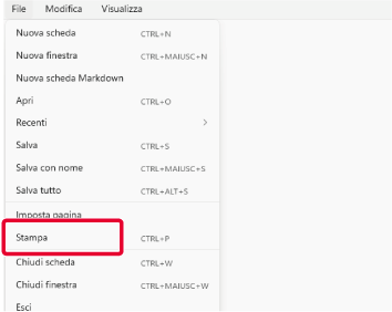 Selezionare [Stampa] dal menu [File] di Notepad.