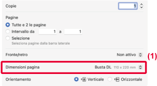 - Selezionare il formato delle buste dal menu "Formato carta".