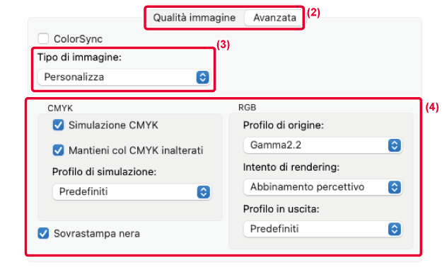 del colore di macOS, selezionare la casella di controllo [ColorSync]