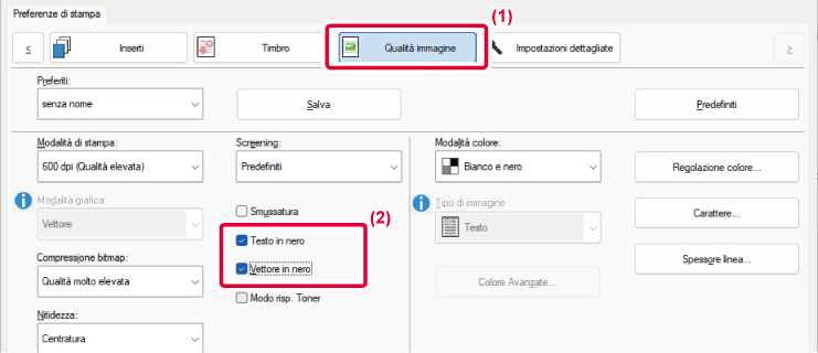 Selezionare se si desidera stampare la zona di dati color nero con il solo toner color nero. |