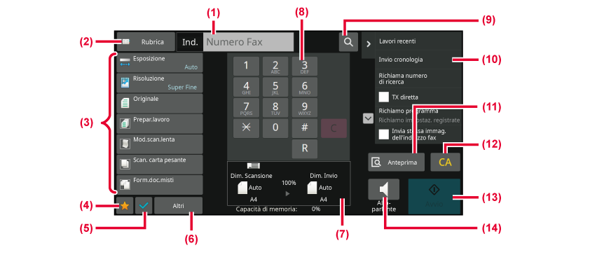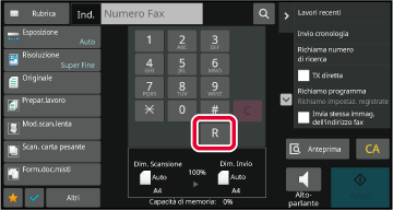 - Consente di digitare un numero di fax.