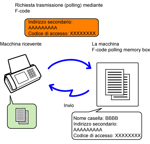 di memoria F-code di un'altra macchina e far inoltrare quel fax