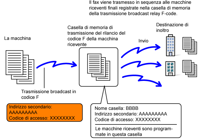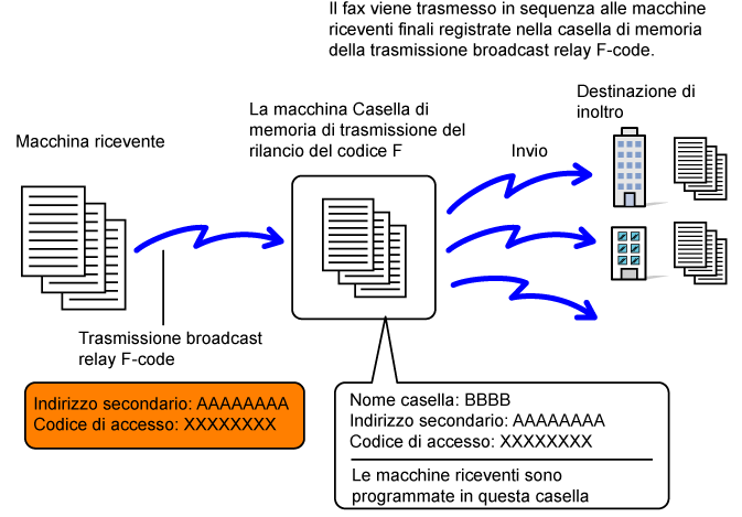 di trasmissione relay F-code, il fax viene ricevuto e memorizzato