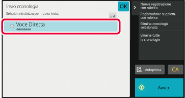 In modalità fax o invio immagine, toccare il tasto [Invio cronologia]