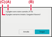 Verrà emesso un segnale acustico per indicare che la scansione e la trasmissione sono terminate.Se l'originale digitalizzato contiene pagine