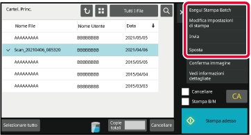 Quando si seleziona la cartella vengono visualizzati i file contenuti. Selezionare il file che si desidera richiamare.Selezionare un'operazione.