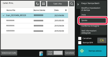 Toccare il tasto della cartella in cui si desidera spostare il file.