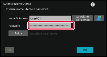 Il testo immesso appare sotto forma di "*". Dopo avere immesso