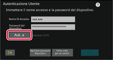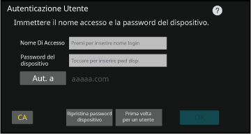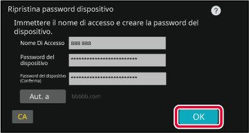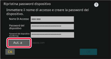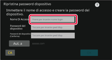 nome di accesso/password del dispositivo, toccare il tasto "Ripristina