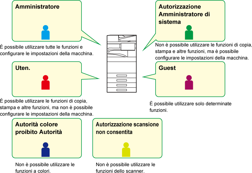 alle persone non registrate di utilizzare la macchina o alcune funzioni.