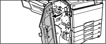 Trek de eenheid voorzichtig naar buiten totdat hij niet meer verder kan.Zet de ontgrendelingshendel van het nietjesmagazijn omlaag en verwijder het nietjesmagazijn.