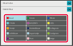 Tik nadat de instellingen zijn voltooid op [OK] in het scherm [Enkele Kleur] en controleer of de gewijzigde instelling wordt weergegeven naast de toets [Enkele Kleur] in het scherm kleurenmodus.Version 01a / bp71c65_usr_01a_nl