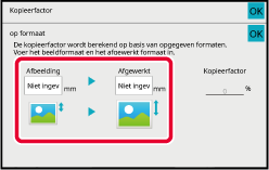 Tik op het gebied van beeldformaat en uitvoerformaat en voer het formaat met de cijfertoetsen in.In dit gedeelte wordt uitgelegd hoe u de