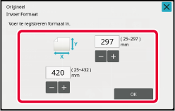 Tik op de gebieden die breedte- en hoogteformaten weergeven en voer het formaat met de cijfertoetsen in.Tik op de toets [OK].