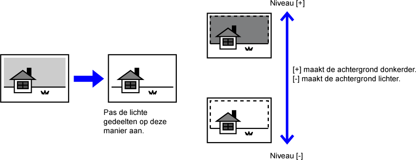 Het niveau van [Aanpassing Achtergrond] wijzigen naar de [+]-zijde
