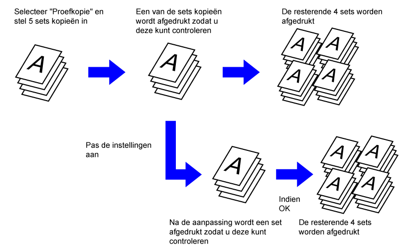 Wijzig zo nodig de instellingen en herhaal de proefkopie totdat u tevreden bent met het kopieerresultaat.Met deze functie wordt het aantal vellen