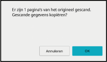 Het telresultaat wordt weergegeven met het aantal gescande vellen van het origineel, niet het aantal pagina's. Wanneer u bijvoorbeeld één origineel dubbelzijdig kopieert, wordt "1" weergegeven om aan te geven dat één origineel vel is gescand en dus niet "2" (voor de voor- en achterzijde van dat ene vel).Tik op de toets [OK] om het kopiëren te starten.