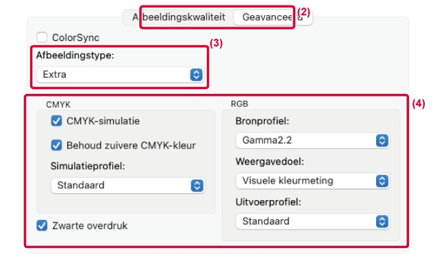 bij Afbeeldingstype, schakelt u het selectievakje [CMYK-simulatie] in