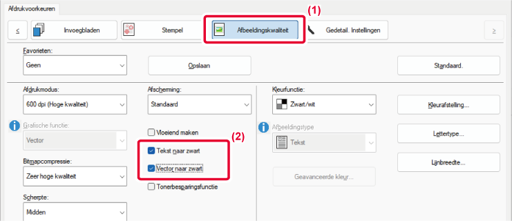 Selecteer of u gebieden met zwarte gegevens alleen met zwarte toner wil afdrukken. |