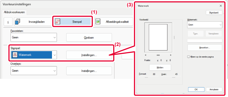 - Selecteer [Watermerk] bij 'Stempel' en klik op de toets