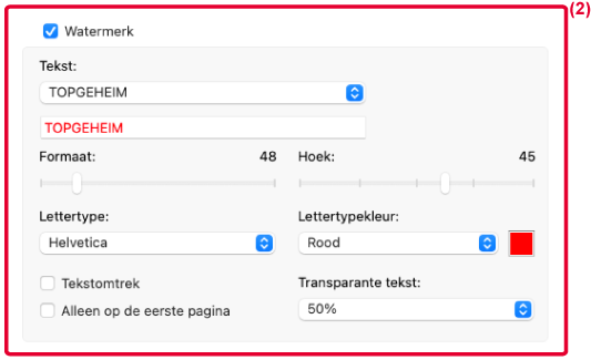 Als [Aangepast watermerk] is geselecteerd, wordt een transparante watermerkafbeelding