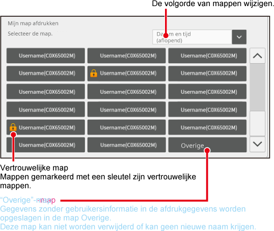 Gebruikers kunnen de afdrukgegevens vanuit hun eigen mappen