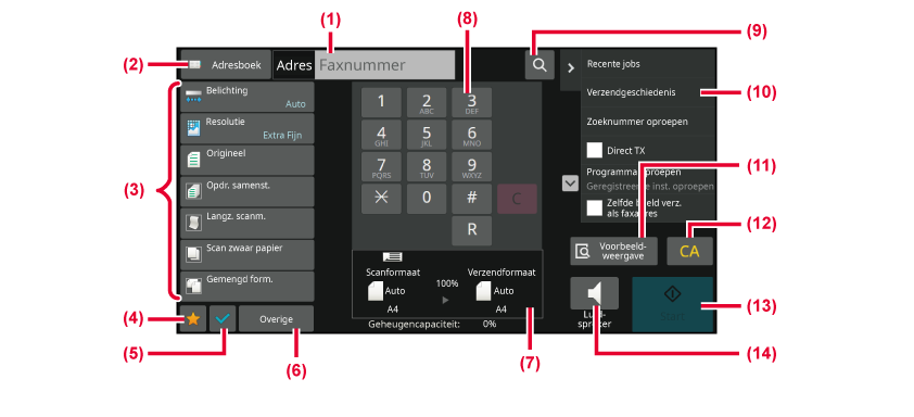 - Hiermee opent u het adresboek en geeft u de bestemming