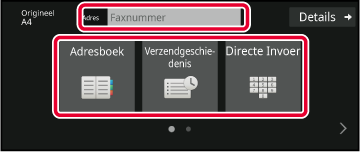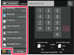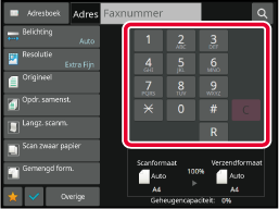 Tik op de cijfertoetsen om het nummer van de bestemming rechtstreeks in te voeren of zoek het adresboek of nummer en vraag het op.Pas de instellingen aan.