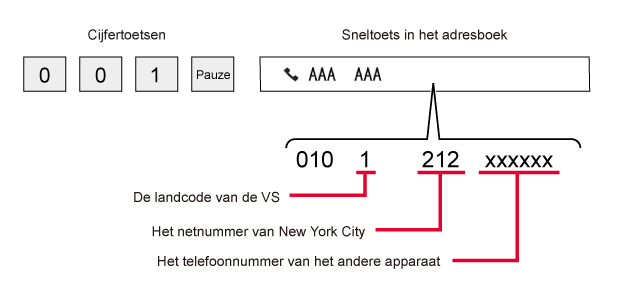 telefoonmaatschappij (bijvoorbeeld "001") en de landcode (bijvoorbeeld