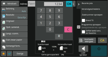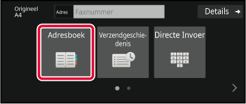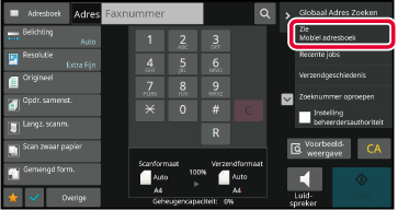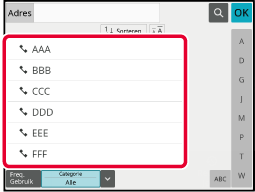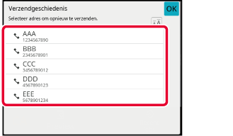De laatste 50 adressen die voor verzending zijn gebruikt, worden weergegeven.Nummerreeksen die u met cijfertoetsen en/of