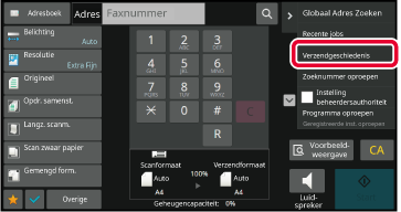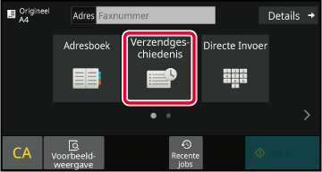 In de Eenvoudige modusTik in het basisscherm of het adresboekscherm op [Verzendgeschiedenis] in het actiepaneel.