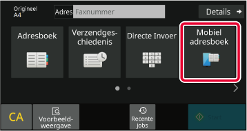 In de Eenvoudige modusTik in het basisscherm of het adresboekscherm op [Zie Mobiel adresboek] in het actiepaneel.